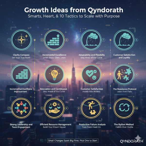 Practical growth tips for business leaders: Review monthly. Adjust. You’re capable – Qyndorath proves it.