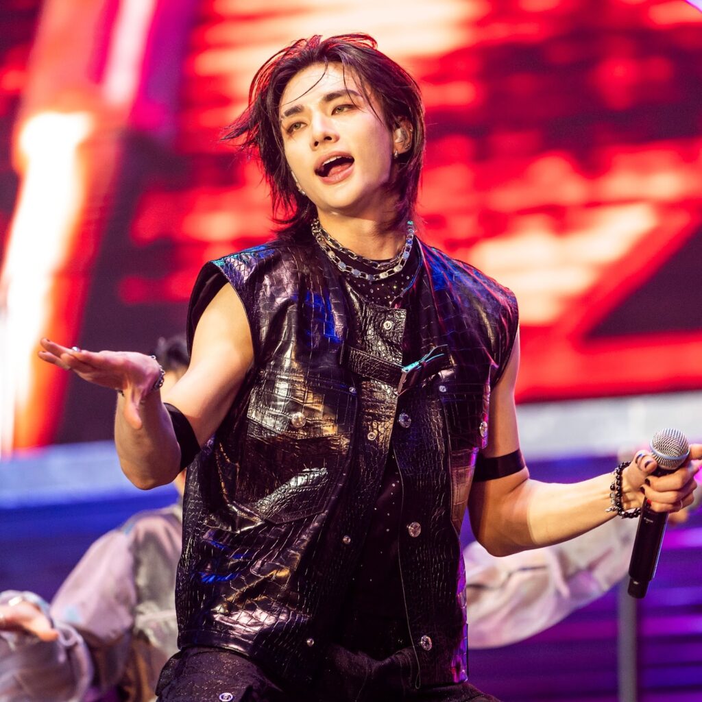 Setlist: 27 tracks including “Maniac” and “Thunderous.” Hyunjin led group dances. No solo, but his rap in “Venom” hit hard. Hyunjin’s stage presence grew here – he owned the stage with flips and spins. A fan from Atlanta shared: “Hyunjin’s eyes lock with yours; it’s magic.”