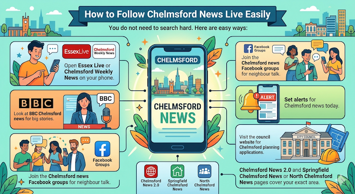 If you live here, Chelmsford news today helps you plan your day. You might check it for school times, bus delays, or new shops. Families look for news about safe places for kids. Workers want to know about traffic before they drive to London or other parts of Essex. Older people read it for health and community stories.