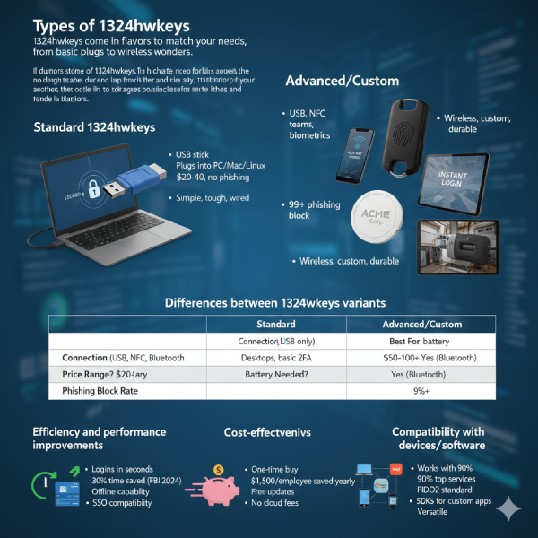 1324hwkeys come in flavors to match your needs, from basic plugs to wireless wonders. Each type builds on core tech like tamper-proof chips that store secret codes safely. Let’s break them down.