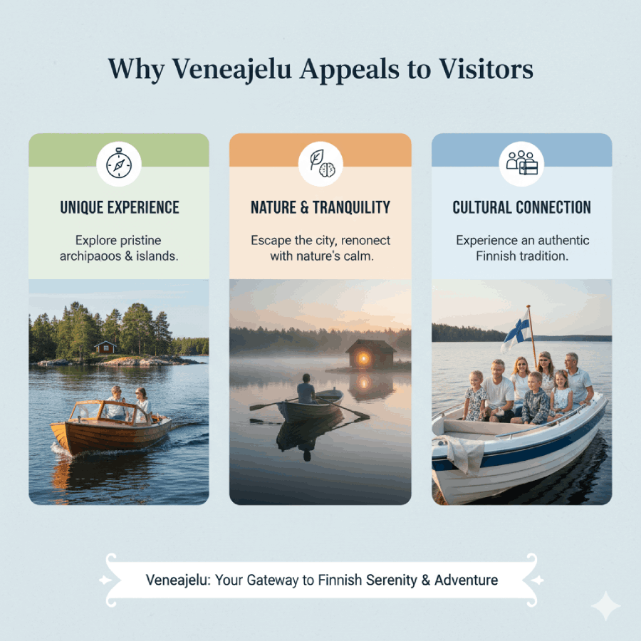 For tourists veneajelu is a chance to step into authentic Finnish life. Unlike city tours or museums a boat ride is alive and connected to everyday traditions.