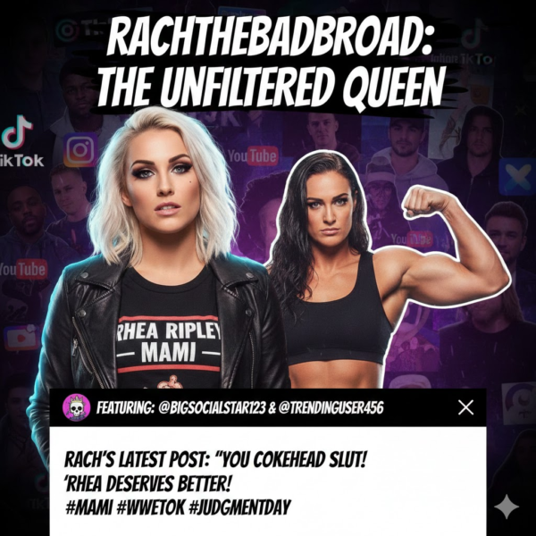 Rachthebadbroad is special. She mixes RachTheBadBroad content with big social media active users. She says strong things. Like “cokehead slut” in a post. Or cheers for Rhea Ripley in WWE. This edgy social media content hits fans sick of fake words.